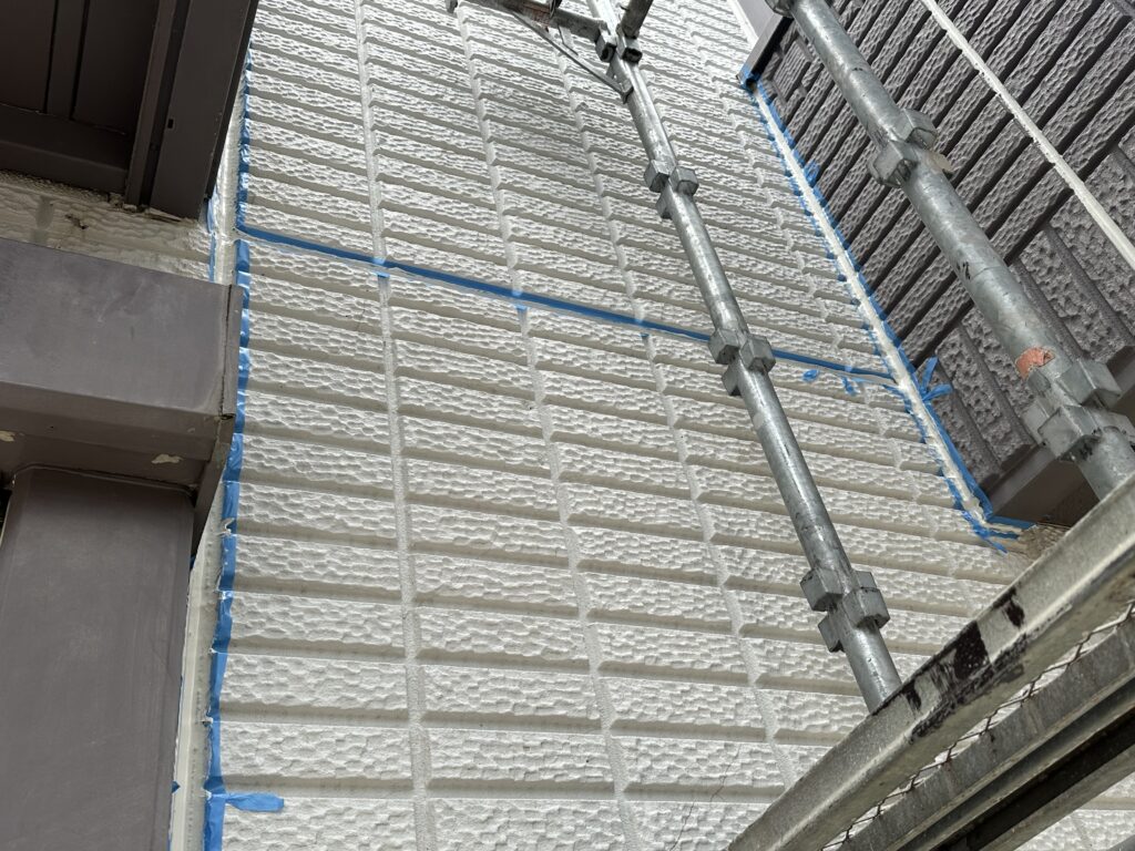 本日は太田市S様邸塗装工事、昨日に引き続きコウキング施工、屋根・破風塗装いたしました。