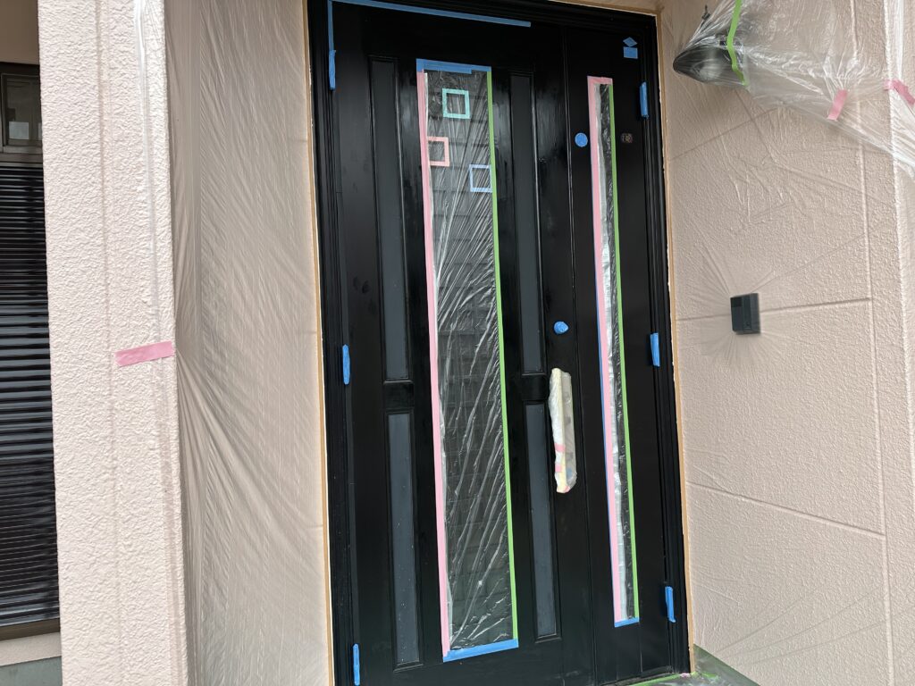 本日は太田市T様邸塗装工事、ベランダ塗装🪮玄関ドア塗装🪮いたしました。