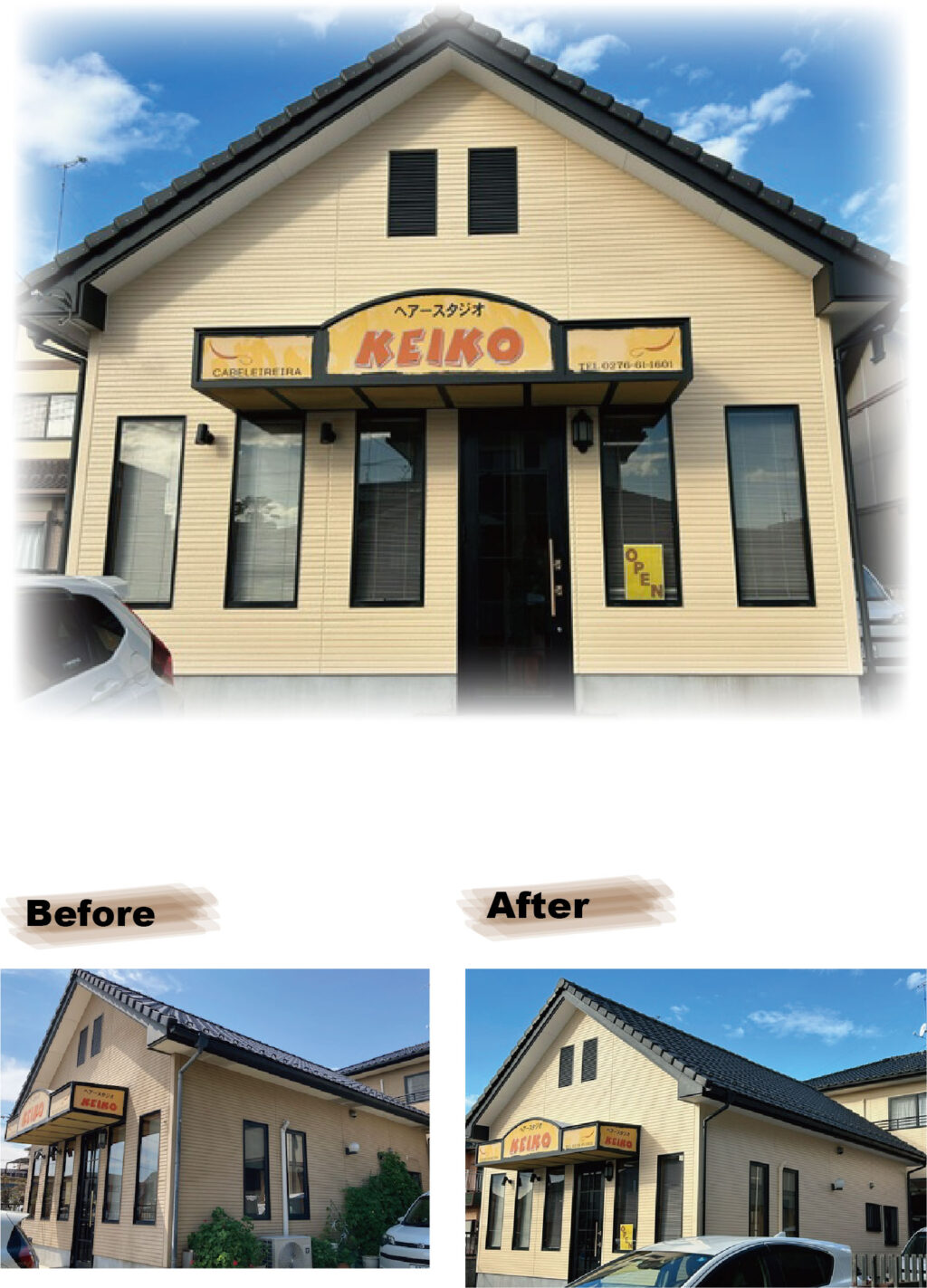 大泉町KEIKO美容室 塗装工事 2023.12.18施工例 施工例 太田市T様邸 塗装工事 太田市K様邸 塗装工事関連記事一覧 太田市S様邸 ベランダFRP床洗浄&塗装 太田市N様邸 塗装工事 太田市S様邸 塗装工事 太田市M様邸外壁ダブルトーン塗装工事 太田市I様邸 コーキング 太田市T様邸 塗装工事 太田市S様邸 塗装工事 外壁塗装工事 太田市M様邸 太田市T様邸外壁塗装